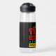 Water bottle featuring Social justice and Black History word art design with raised fists with "Juneteenth - the Real Independence Day" text in Pan Africa colours combo on black background.