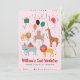 Celebrate your toddler’s 2nd birthday with this adorable jungle-themed invitation featuring friendly animals and festive balloons.