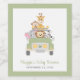 Thank your baby shower guests with a bottle of wine! These fun gender-neutral wine bottle labels feature a cute illustration of baby jungle animals (lion, elephant, zebra, monkey and giraffe) piled into a safari vehicle and the mother's name and "Baby Shower" in coordinating army green script. You can also personalise the shower date.