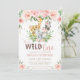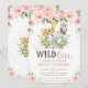 Jungle Animal Safari Pink Floral 1st Birthday Invitation