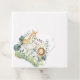 Cute jungle animals baby shower favour tag featuring a giraffe, elephant, lion & rhino.