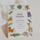 Fun baby shower invitation featuring watercolor hand-sketched jungle animals. Personalise with your information or click "Click to customise further" to edit font styles, size and colours.