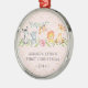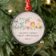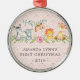 Cute baby's first Christmas ornament the sweetest little jungle animals set on a pink damask background.