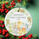 Cute baby's first Christmas ornament the sweetest little jungle animals framed with watercolor jungle leaves.