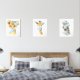 Add the finishing touches to your baby’s nursery or child’s bedroom with these gorgeous art prints! Design features jungle animals (lion, giraffe, zebra), blue bubble gum, blue watercolor flowers and greenery.