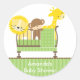 Adorable jungle animals in a little crib. Colours are perfect for gender neutral baby shower stickers.