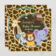 Jungle Animals on Brown Giraffe Animal Print Invitation