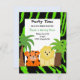 The cutest little tiger and a friendly lion with a big mane accent this fun jungle themed birthday invitation. Palm trees blowing in the background. Customise with all of your personal information as desired. A fun zoo animal invitation.