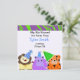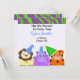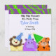 A lion, purple hippo and a cool tiger wearing party hats ready for a birthday party accent this fun invitation. Customise with all of your informaiton as desired. Get the kids excited about this birthday party.