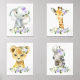 Add the finishing touches to your baby’s nursery or child’s bedroom with these gorgeous art prints! Design features jungle animals (lion, giraffe, elephant, zebra), purple watercolor flowers and greenery.