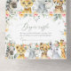 Invite friends and family in style and set the tone for your special day with this charming baby shower invitation. Design features jungle animals (giraffe, zebra, lion, elephant, cheetah, rhino), hibiscus flowers and eucalyptus leaves on white background.