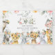 Add a personal touch to your baby shower celebration with these stylish and memorable party items! Design features jungle animals (giraffe, monkey, zebra, lion, elephant, cheetah, meerkat, rhino), hibiscus flowers and eucalyptus leaves on white background.