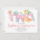 Jungle Animals Safari Pink 2nd Birthday Girl Cute Invitation