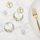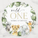 Add a personal touch to your birthday celebration with these stylish and memorable party items! Design features jungle animals (zebra, lion, elephant, giraffe) and palm leaves on white background.