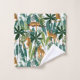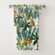 Brown jungle cat and tropical leaves in a seamless pattern.