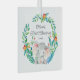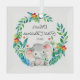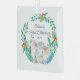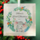Cute baby's first Christmas ornament the sweetest little elephant framed with watercolor jungle leaves.