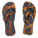 Giraffe print flip flops are a type of footwear that typically features a pattern resembling the distinctive markings found on a giraffe's hide. The pattern is often a mix of tan, brown, and black spots arranged in irregular shapes, much like the spots found on a real giraffe. giraffe print flip flops are best suited for informal settings such as beach outings, pool parties, backyard barbecues, or casual walks around town.