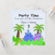 Get the kids excited with this cute blue and purple hippopotamus in the jungle. A fun birthday invitation. Customise with your own information as desired.