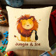 Add a touch of adventure to your child's room with this charming throw cushion featuring a playful lion and penguin duo. The unique "Jungle & Ice" message and warm pastel background make this cushion perfect for creating a cosy and fun atmosphere in any nursery or kids' room. A great addition to your child's space, combining the magic of the wild and the arctic.
