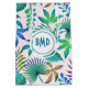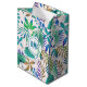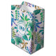 Lush tropical leaves seamless pattern in blue and green tones over a white background.