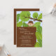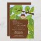 Adorable Boy Monkey Baby Shower invitation featuring a cute monkey hanging off a tree branch set on a jungle safari leaf background. Matching items available in our shop. Perfect for a baby boy baby shower.