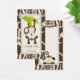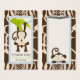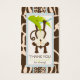 Fun jungle monkey hanging on a tropical vine with jungle leaves with animal prints baby shower gift tag.