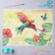 Vibrant tropical decoupage tissue paper, makes beautiful gift wrap, with a scarlet macaw, butterflies and colorful tropical flowers