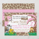 This adorable invitation is perfect for your young child, featuring a monkey, baby zebra, lion and giraffe. Completely customisable, change font or font colour. Add child's name, address and age. This invite adds an extra space to let you add directions or a special message. You may also remove the pink bar on the back and text to just have a beautiful patterned background. Your choice! Thank you cards, stamps and matching envelopes and t-shirts for your child's special day are available in our store.