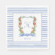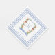These adorable boy baby shower, sprinkle or sip and see luncheon napkins would be perfect for celebrating your sweet baby. They have the party date below a blue watercolor crest with his first initial surrounded by greenery and jungle animals, your bundle of joy's first name, and a coordinating blue watercolor striped edge. They're unique and precious just like your baby.