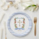 These adorable boy Baptism 9" paper plates would be perfect for your sweet baby's christening. They have the baptism date below a blue watercolor crest with a gold cross surrounded by greenery and jungle animals, your bundle of joy's first name, and a coordinating blue watercolor striped edge. They're unique and precious just like your baby.