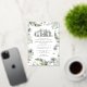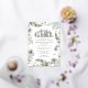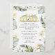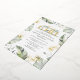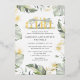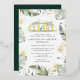 Wild, calm, and elegant safari animal baby shower invitation featuring a giraffe, gold effect and green leaves. Perfect for girls baby shower invitations