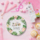 Girl Jungle Safari Baby Shower Paper Plates. Designed with watercolor cute baby jungle animals. Matching items in our store Cava Party Designs.