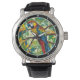 Jungle Symphony" - Stained Glass Macaw Wall Watch