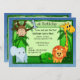 Cute and colourful monkey, elephant, lion and giraffe jungle theme birthday party invitations for your child's first birthday. Customise text with your personal details. Also available in other ages.