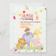 PixDezines jungle theme for a fun birthday bash. Featuring baby animals, pink hippo, a purple elephant, yellow polka dots giraffe, tiger cub as well as a cheeky little brown monkey riding on an elephant head. Zebra print is a finishing touch on the background.