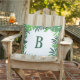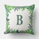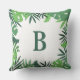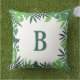 Jungle tropical palm leaves green monogram cushion
