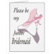 White high heel with a pink ribon around it, with the words, "Please be my Junior Bridesmaid."