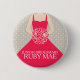 Elegant graphic junior bridesmaid girl with pale skin in a red dress holding a posy of stylised red roses pin button badge. Reads Junior bridesmaid Ruby Mae, Or personalise with your own girls names. Great for bridal showers, wedding rehearsals or to add to wedding favour bags.