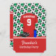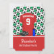 A cool invitation to a soccer themed event like a Birthday or slumber party. This modern style football invitation feature a soccer jersey on the front with customisable surname and number , a pair of soccer cleats and a water bottle ,as well the event details. The background features black and white soccer balls on a soccer field back drop. On the back is a template to add your own soccer event details . If you require a different colour of this design contact us via the giftsbonanza store prior to purchase to discuss