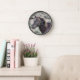I received this as a birthday gift from my husband to replace a clock that had broken. It was perfect, pictures of my sweet family to see at every hour of the day. The size of the pictures looks nice for the size of the clock and I love looking at it! The only downside is there is no cover for the battery on the back, which makes me nervous having little kids running around the house, but an easy fix with some tape. The printing turned out clear, considering they were all cell phone pictures. Some of them look slightly grainy upon getting close up. But so nice overall!