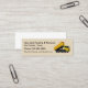 Simple junk hauling and removal services business card template with image of a dump truck in the background. Presented on mini business card stock that is half the height of a standard business card and is compact and convenient to hand out to customers.