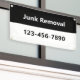 This business banner has a text template. You can edit it to create a custom banner to market your business. The top part is black with white text to bring attention to your business name or the service you offer. (Shown: Junk Removal) The bottom portion is white with black text for your phone number or another custom message. All text can be edited or deleted.