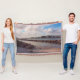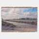 In the original photograph by ZoeSPEAK on this Throw Blanket, we see Jupiter Inlet, on Florida's east coast. It's late on a sunny afternoon in winter. The sand and rocks marking the way from the Atlantic ocean are touched by the sunlight, and the water reflects the colours of the sky and puffy white clouds, from deep blue to golden. A boat speeds past the homes on the far shore, and the lighthouse can be seen on the horizon.