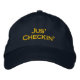 Cool EMBROIDERED CAP for Dudes who are into Cool! "Jus' Checkin'" is just a quick check to make sure all is well with the group's status quo.