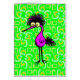 A funny looking purple cartoon bird decorates the front of this colourful card. A bight green background with geometric shapes completes the design. Customise by adding a message inside for a truly personal greeting.