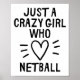 Just a crazy girl who loves netball. For the girl or lady who loves playing, watching or coaching netball. Funny gift for adults, children and teenagers for Mother's day, Christmas, Birthdays or for yourself