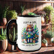 Cute coffee mug for any girl who loves plants. Cute ai graphic in a pixel video game style. Girl holding a watering can surrounded by lots of plants.
