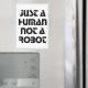 Let everyone know that your are "Just a Human Not a Robot," with this black and white button. It has modern typography with a geometric font. The background color may be changed in the design tool.