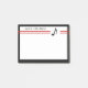 This fun little note pad is white with a black border. The design, on the top, has two red ruled lines and a single musical note. The text reads "Just A Little Note" can be personalised with your own phrase or a name.