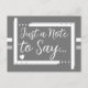 I changed the text on cover and added a photo of recipient's cat on back of postcard with a message for quick healing. They loved it!! Print turned out great! I purchased an envelope from seller to put postcard in because I'm not comfortable sending a postcard with personal info that the mail carrier can read.